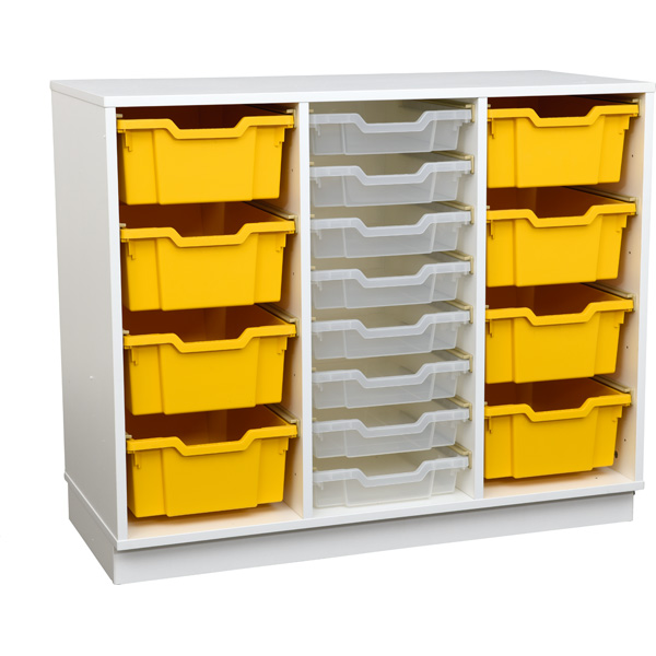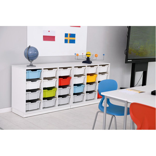Die Quadro-Regale für Kunststoffbehälter, Tiefe 48 cm, sind in 3 Breiten (B 70 zweireihig, B 104 dreireihig, B 138 vierreihig) und diversen Höhen erhältlich. Die geräumigen Fächer können variabel mit Kunststoffbehältern verschiedener Höhen bestückt werden (372005-372026, 372034-372041, 372050-372073, separat bestellbar).