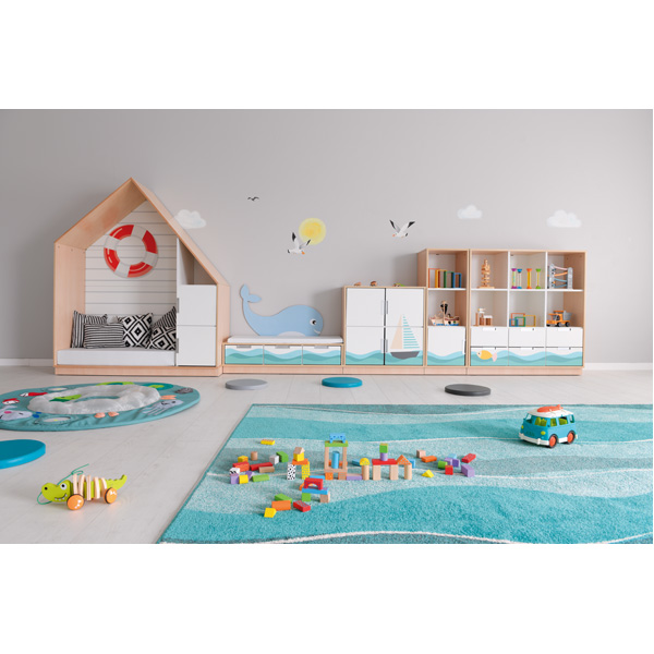 Quadro-Themenschranksets bestehen aus funktionalen Schränken, deren fantasievolle Frontengestaltung bestimmte Themenbereiche ansprechen. Farbenfrohe, kindgerechte Applikationen schaffen eine inspirierende und doch dezente Umgebung, die zum Lernen und Spielen anregt. Das Set kann mit Zusatzelementen zu den jeweiligen Themen ergänzt werden. Die Schränke sind auch einzeln erhältlich.