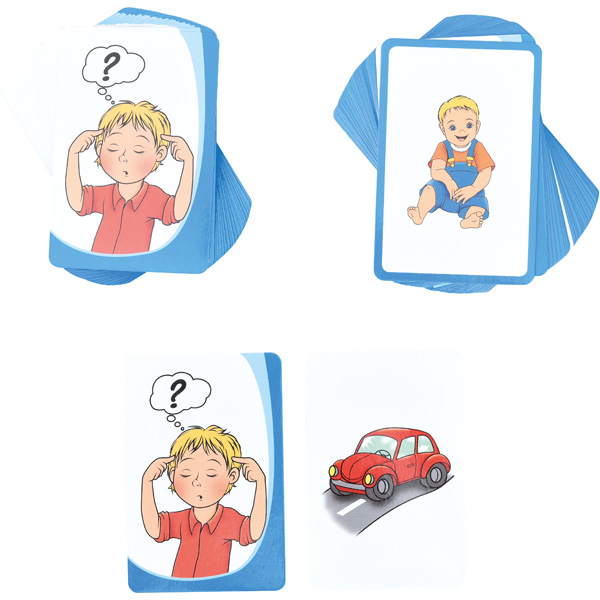Stell dir vor, du könntest Gedanken lesen ... Mit ein bisschen Konzentration und den richtigen Fragen gelingt es dir! Ziel ist es herauszufinden, was auf der Karte deines Mitspielers abgebildet ist, indem du geschickte Fragen stellst. Die Abbildungen zeigen Tiere, Menschen, Fahrzeuge und vieles mehr.