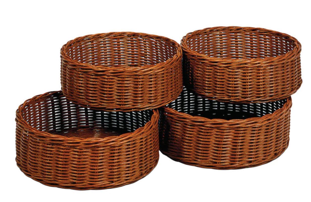 Praktisches Set aus vier runden Körben in zwei verschiedenen Grössen – ideal zur Aufbewahrung von Spielmaterialien, Bastelzubehör oder Alltagsgegenständen im Gruppenraum oder Spielbereich.