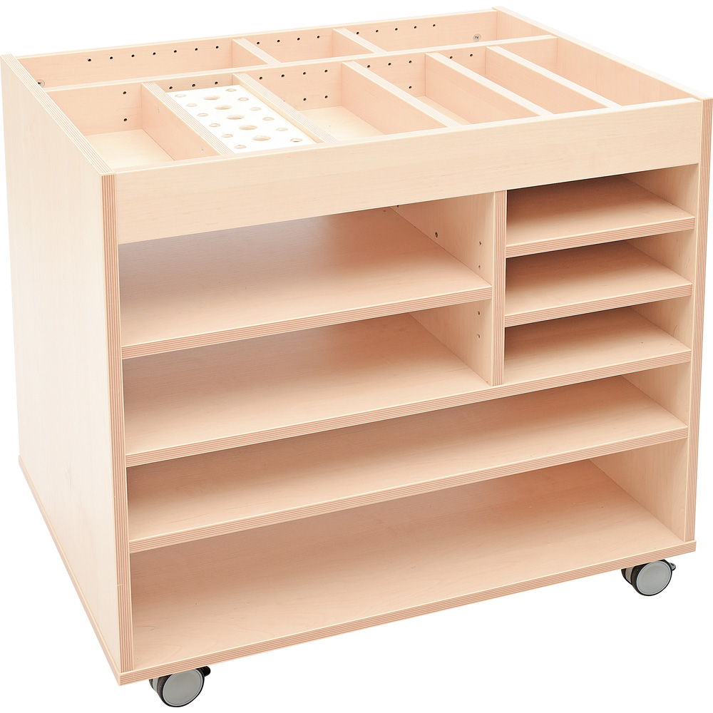 • unten 2 durchgängige Fächer mit fester Höhe, passend für Papierformate bis A2
