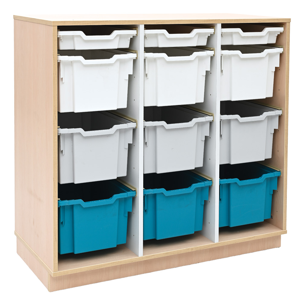 • inkl. 12 Kunststoffbehälter: 3 flache, weiss (H 7,5 cm), 3 grosse, weiss (H 22,5 cm) 3 grosse, hellgrau (H 22,5 cm) 3 grosse, türkis (H 22,5 cm)