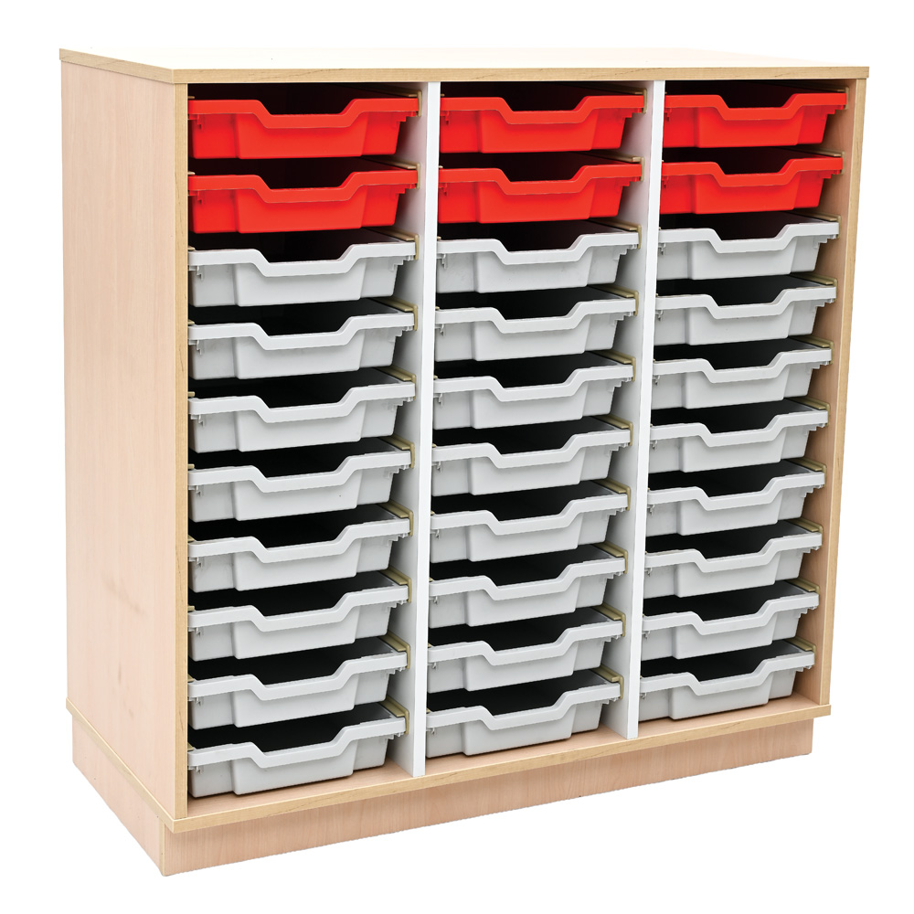 • inkl. 30 flache Kunststoffbehälter (H 7,5 cm); Farben: rot, hellgrau