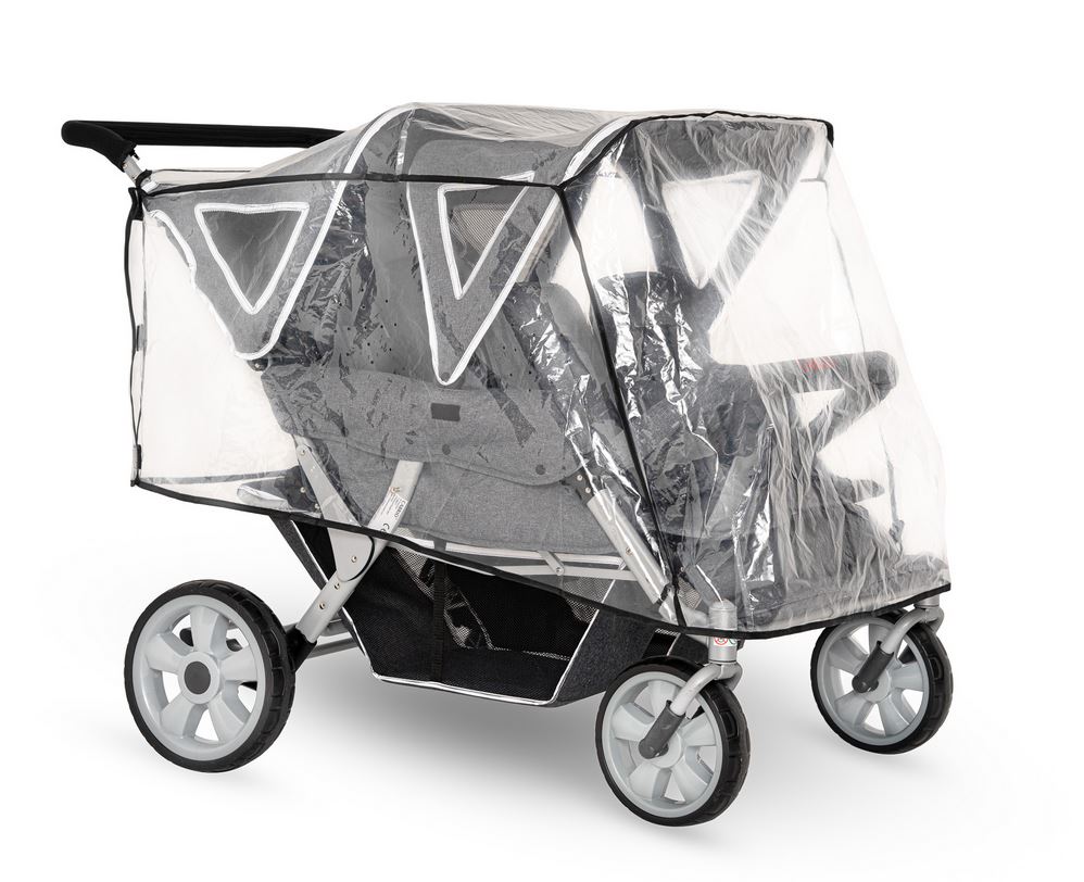 Der leichte CABRIO™ Kinderwagen wurde speziell für Kindergärten und Pflegefachkräfte entwickelt. Rückenlehnen und Fussstützen der mit Sicherheitsgurten ausgestatteten Sitzplätze können individuell eingestellt werden. Der grosse Gepäckkorb bietet viel Platz für grosses Proviant, Lieblingspuppen oder Strickjacken. Den nötigen Schatten und Schutz vor UV-Strahlen spenden zwei abnehmbare Sonnendächer. Die sind übrigens, ebenso wie der Gepäckkorb, mit Reflektorstreifen versehen. Die leicht bedienbare Fussbremse sorgt für eine zusätzliche Sicherheit. Trotz seiner stabilen und kompakten Bauweise lässt sich der „Cabrio Buggy“ angenehm leicht manövrieren.