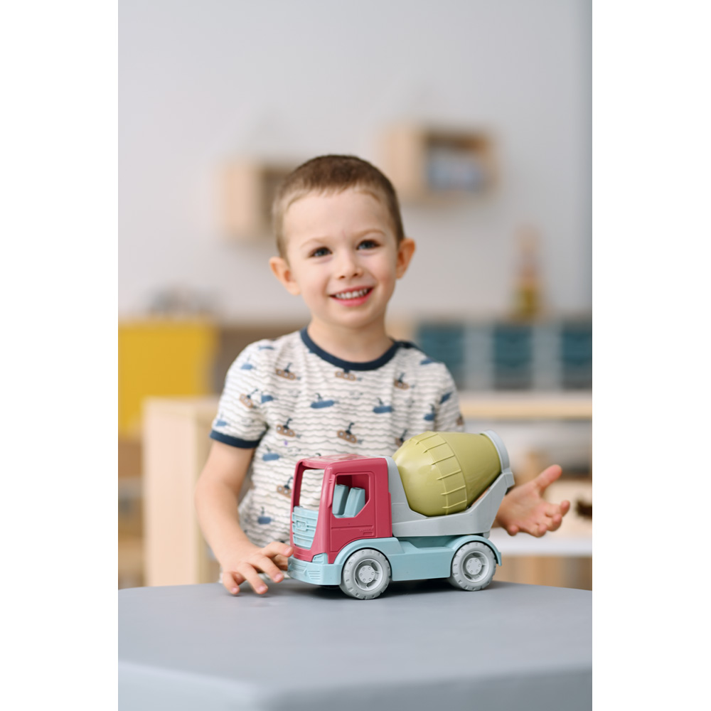 Das leichte und wendige Fahrzeug verfügt über einen rotierenden Mischer, der auf einem beweglichen Fahrgestell montiert ist. Beim Spielen können die kleinen Bauarbeiter Sand oder Wasser in den Mischer einfüllen und konstruktiv tätig werden.