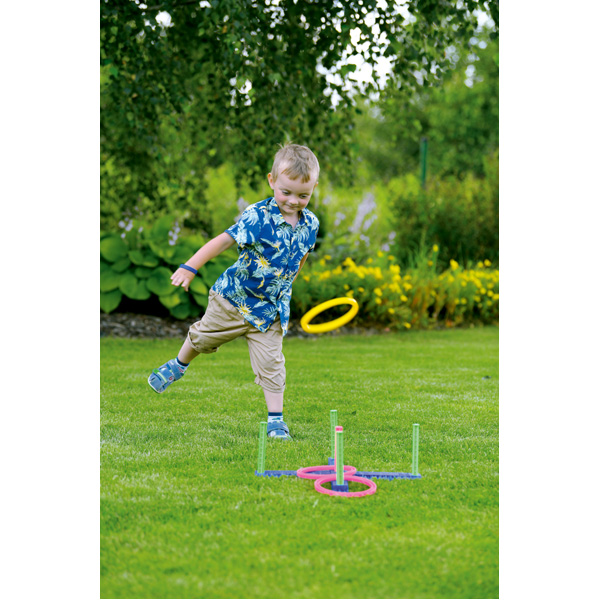 Geschicklichkeitsspiel, bei dem ein Ring auf die Stäbe geworfen wird. Zu zweit oder in Mannschaften spielbar. Konzentration, Auge-Hand-Koordination, Beweglichkeit und Teamgeist sind gefragt. Leicht und zusammenklappbar.