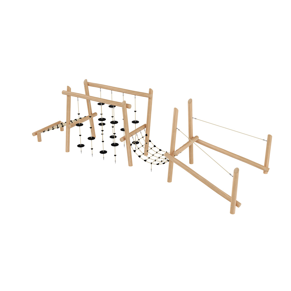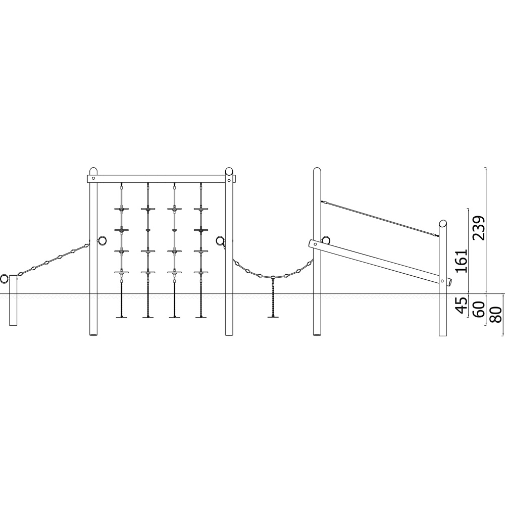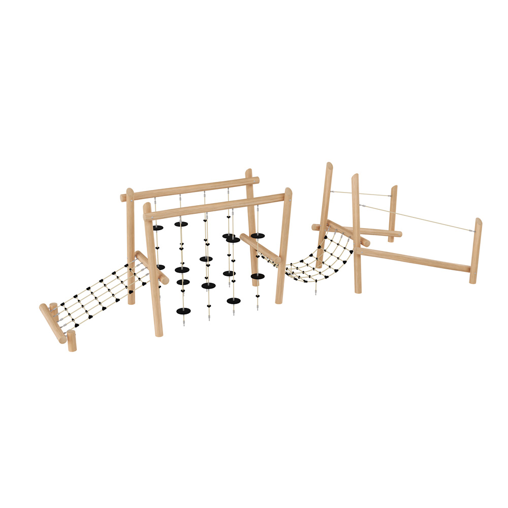 Robinio ist ein aussergewöhnlicher Abenteuerspielplatz für alle Kids. Die Serie vereint den Reiz der Natürlichkeit von Robinienholz mit der edlen Optik und den Vorzügen von Edelstahl, wie höchste Witterungsbeständigkeit und Langlebigkeit bei minimalem Wartungsaufwand. Robinie ist ein sehr festes und dank seinem hohen Ölgehalt natürlich konserviertes Holz, das sich hervorragend für Spielplätze eignet. Kleine Details wie die angeschrägten Pfostenschutzkappen aus Holz verleihen der Serie das besondere Etwas. Alle Geräte entsprechen DIN EN 1176 und sind zertifiziert, erfüllen somit die Voraussetzungen für den öffentlichen Bereich. • Material: Edelstahlrundpfosten (Ø 102 mm), direkt im Boden verankert und absolut korrosionsbeständig, dekorative Schutzkappen aus verleimtem Kantholz • einige Geräte mit Robinienrundholzpfosten, direkt im Boden verankert • naturbelassenes, unbehandeltes Robinienholz, extrem haltbar • Rutschen, Stangen und Befestigungselemente aus Edelstahl • farblich angepasste Seile aus PP mit Stahlkern