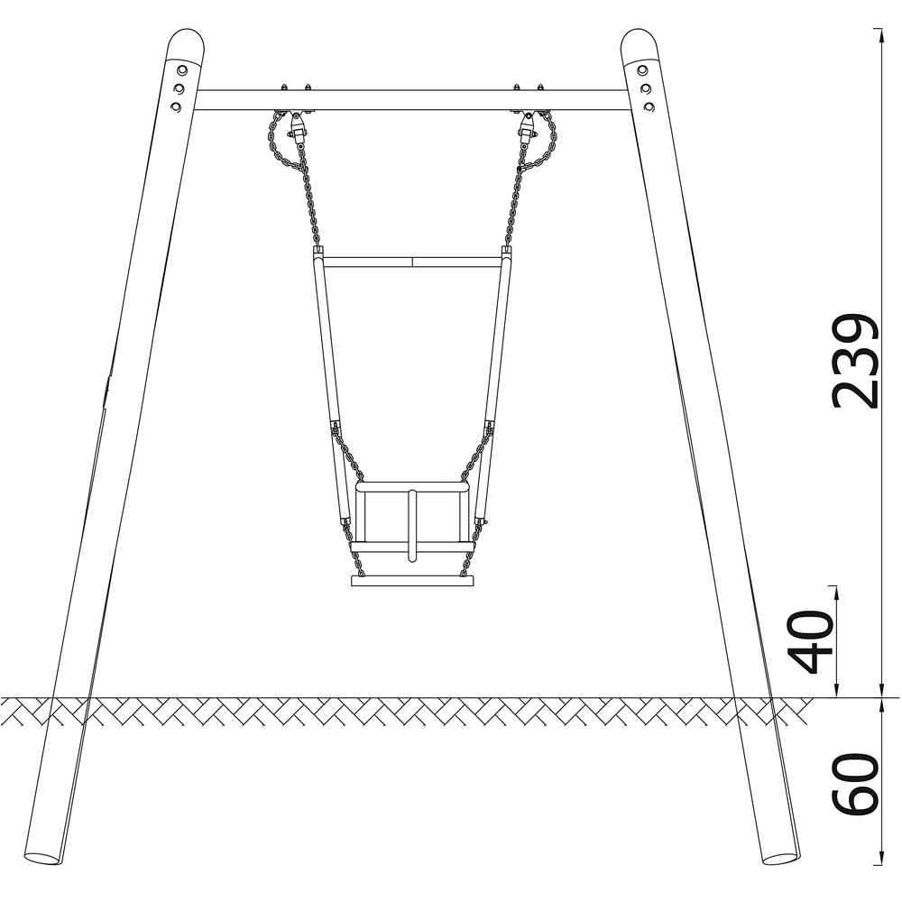 • Schaukelsitz inklusive. Schaukeln mit Eltern-Kind-Sitz werden nur als fertiges Set aus Gestell und Sitz angeboten, da der Eltern-Kind-Sitz eine besondere Gestellbreite benötigt. Er lässt sich nicht an unseren Einfach-, Doppel-, 3er- oder 4er-Schaukelgestellen anbringen.