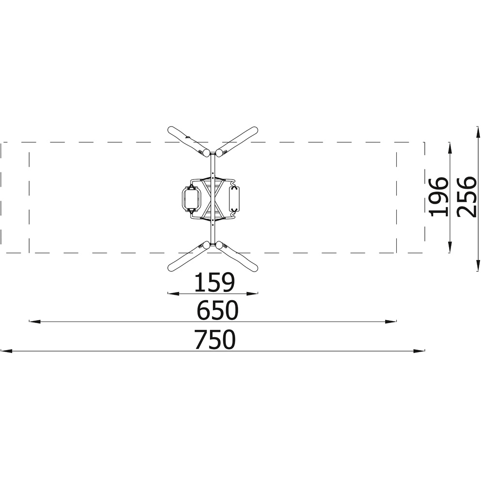 • Sicherheitsbereich: 196 x 750 cm (Fläche: 15 m²)