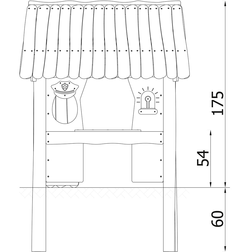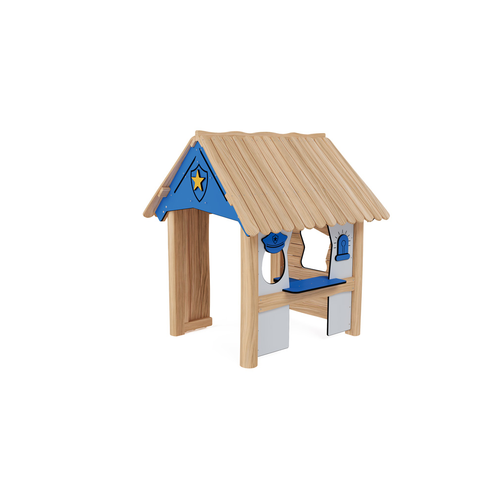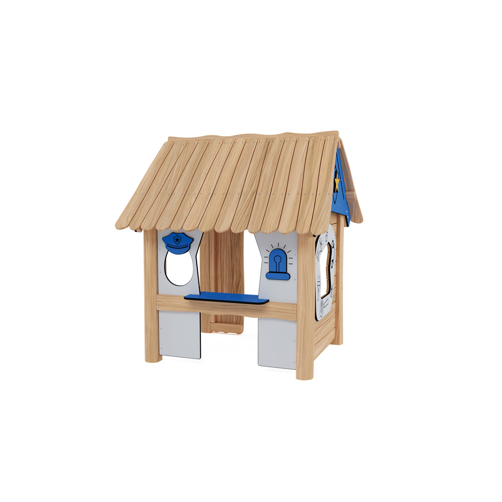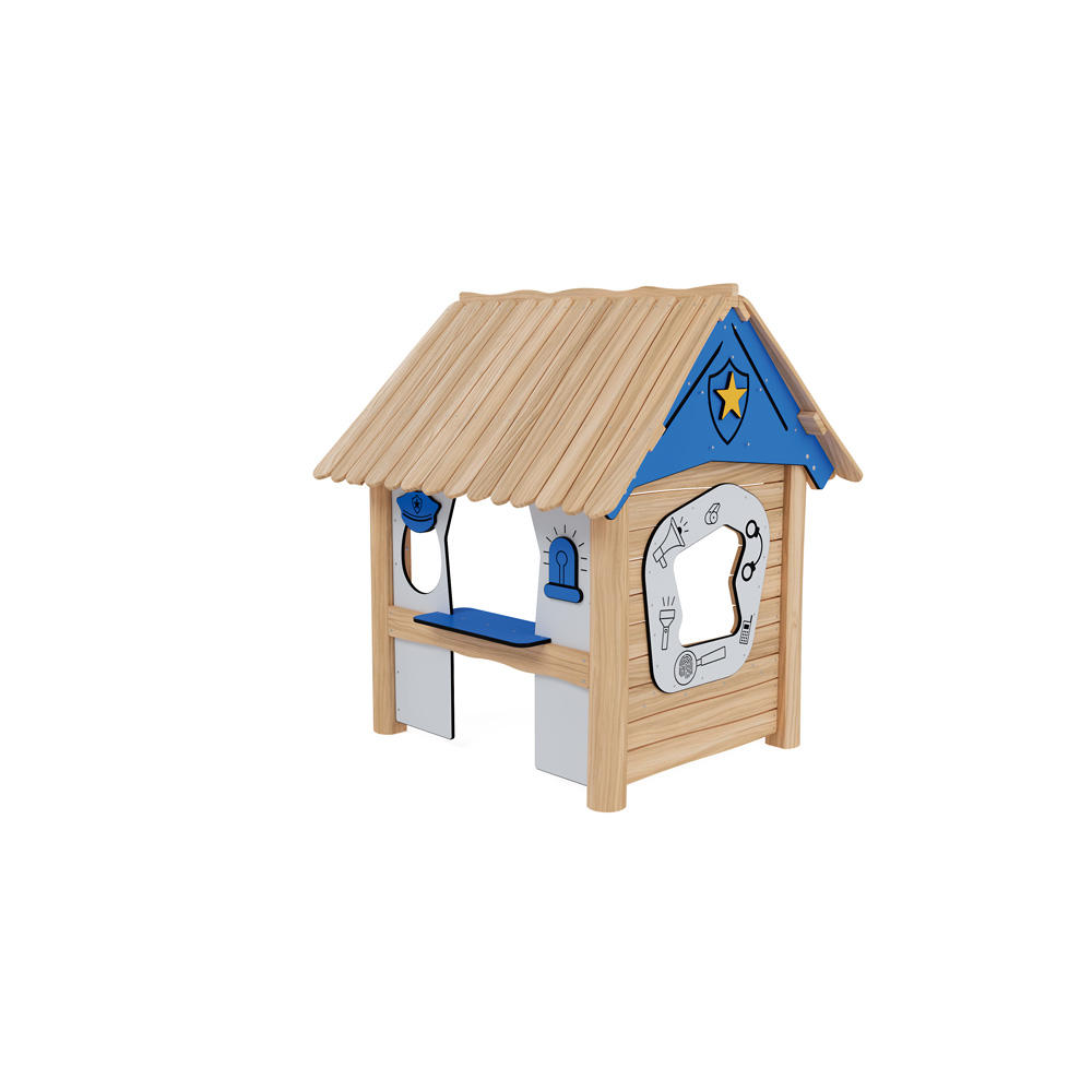 Unsere Robinio-Spielstadt-Edition ist eine bunte Welt aus farbenfrohen Spielhäuschen und Zubehör, die Kinder dazu inspiriert, in fremde Rollen zu schlüpfen und ihrer Fantasie freien Lauf zu lassen. Auf der Polizeistation ist immer etwas los. Von hier starten die Polizisten zum Einsatz (z.B. mit dem Polizeiscooter NV30130, separat erhältlich) und hier sitzt die Einsatzzentrale, die ihn leitet. Am Schalter werden Anzeigen und Meldungen über Verkehrsunfälle entgegen genommen und Auskünfte erteilt, am Guckloch Fotos gemacht. Das Spielhaus eignet sich hervorragend, um mit den Kindern darüber zu sprechen, wie wichtig Sicherheit und Ordnung sowie das Einhalten von Regeln für die Gemeinschaft sind und wie uns die Polizei dabei hilft. • Wand- und Schmuckelemente aus HDPE • Anzahl der Nutzer: 4 • Grundfläche: 159 x 145 cm • Sicherheitsbereich: 459 x 445 cm (Fläche: 18,5 m²) • Gesamthöhe: 175 cm • max. freie Fallhöhe: 54 cm • von 1 bis 6 Jahren