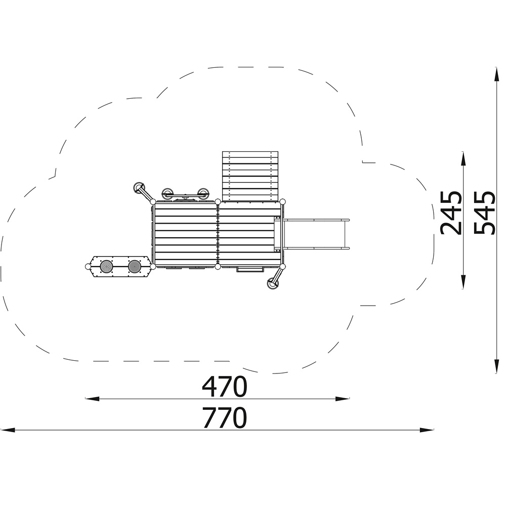 • Sicherheitsbereich: 770 x 545 cm (Fläche: 31,5 m²)