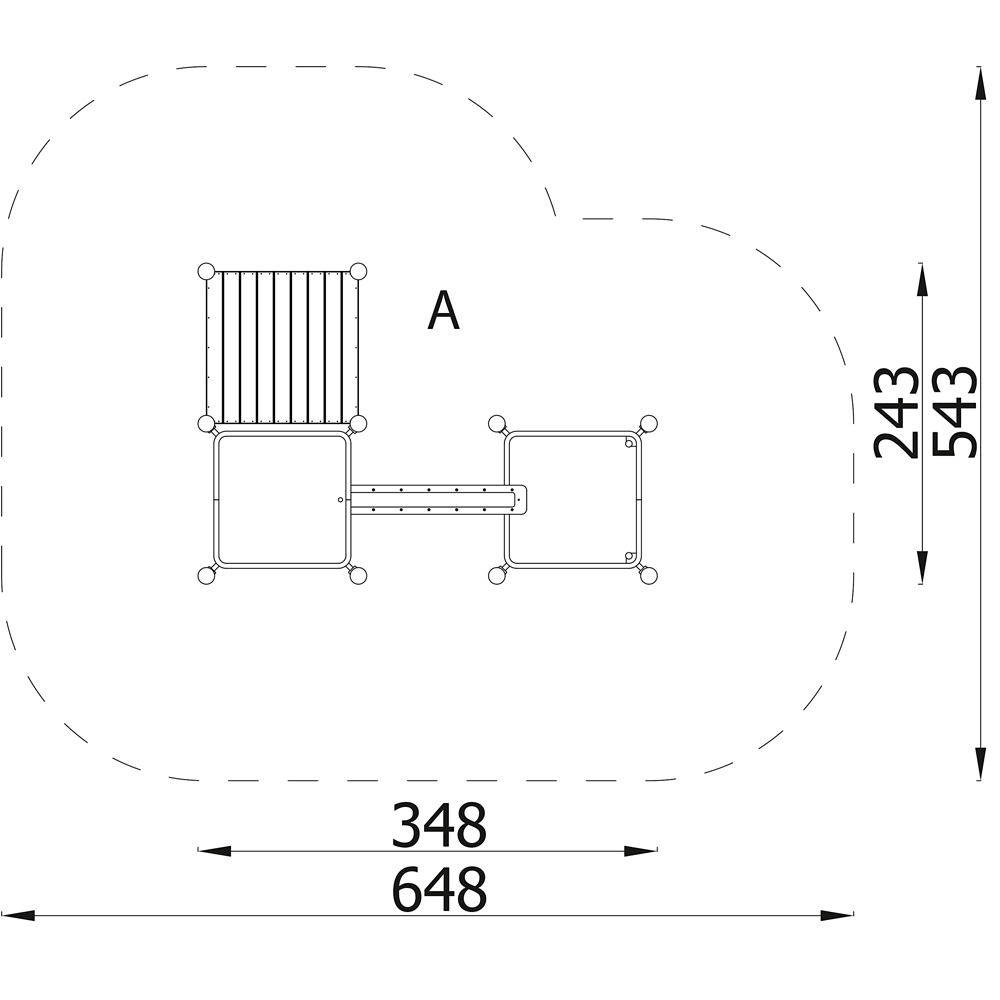 • Sicherheitsbereich: 645 x 540 cm (Fläche: 30 m²)