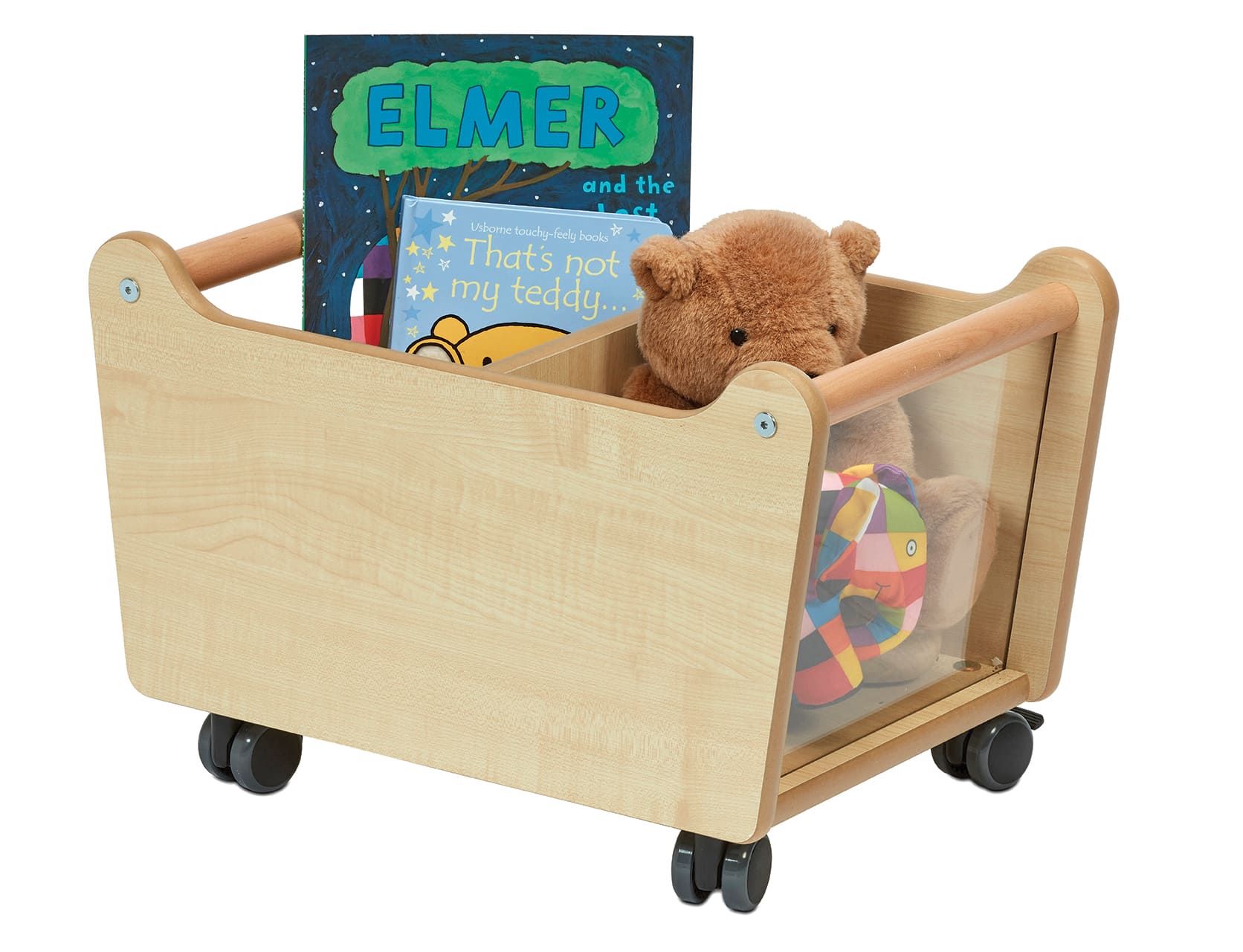 Das vielseitige Design dieses praktischen Rollbehälters macht ihn für viele verschiedene Zwecke geeignet. Er eignet sich ideal zur Aufbewahrung von Bausteinen oder Small World und kann auch als mobile Leseeinheit verwendet werden. Durchsichtige, kindersichere Stirnseiten geben den Blick auf den Inhalt frei und erleichtern so die Orientierung und den Zugriff auf die Materialien. Die Rollen können für den Einsatz im Babyzimmer abgenommen werden.