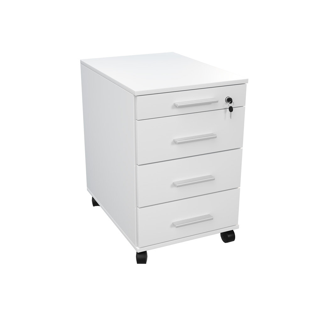 Rollcontainer mit 4 Schüben, weiss