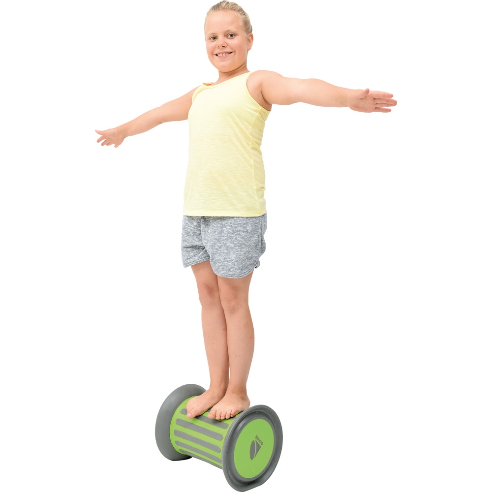 Sie stimuliert gleichzeitig den propriozeptiven, vestibulären und taktilen Sinn und trägt so zur Förderung von Gleichgewicht, Körperwahrnehmung und Koordination bei. Die Gummireifen sorgen durch ihre natürliche Stauchung für eine verringerte Geschwindigkeit, ermöglichen ein nahezu geräuschloses Rollen und schützen dabei den Bodenbelag.