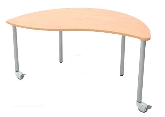 Tischrahmen aus Quadratrohr (40x20 mm), runde Metallbeine (Ø 40 mm, alufarben) in verschiedenen festen Höhen. Kunststoffgleiter an den Beinen verhindern das Zerkratzen des Fussbodens. Die Tischbeine sind wahlweise auch mit Rollen erhältlich (1 Rolle bei dreieckigen Tischplatten, 2 Rollen bei allen anderen Formen), Rollen feststellbar. Sie erleichtern das Verschieben der Tische - so kann man schnell von Einzel- zu Gruppenarbeit übergehen. Bitte beachten Sie hierzu den Mehrpreis. Sollten Sie im Online-Angebot die gewünschte Tischform mit Rollen nicht finden, fragen Sie bei unseren Mitarbeitern nach. Wir beraten Sie gerne.