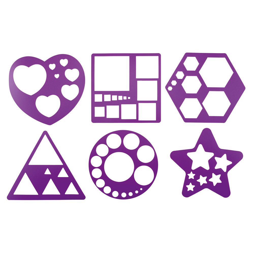 Das Set aus Kunststoffschablonen ist ideal, um Kindern auf spielerische Weise geometrische Formen und Grössen beizubringen. Mit Farben, Kreide oder Stiften lassen sich eigene Bilder gestalten. Die Schablonen sind leicht zu reinigen, einfach mit einem feuchten Tuch oder einem Sprühreiniger abwischen.