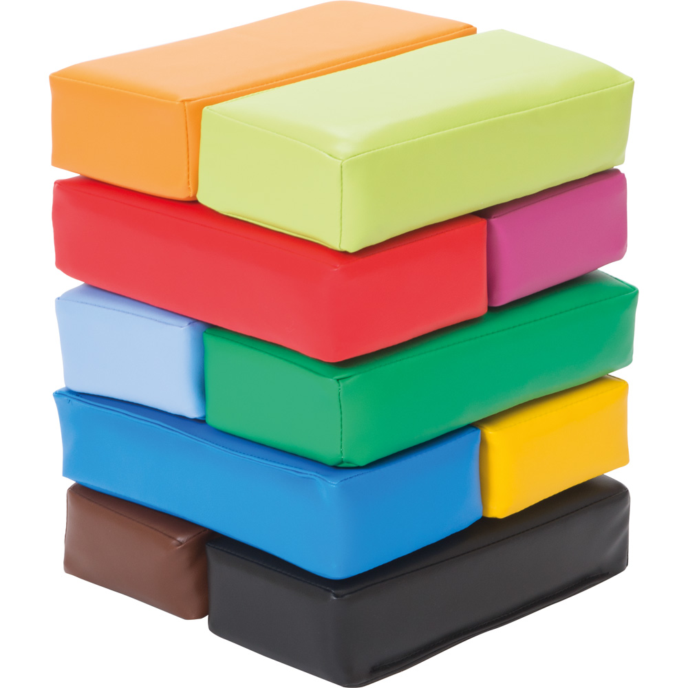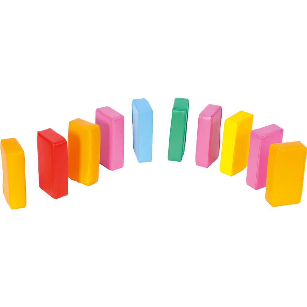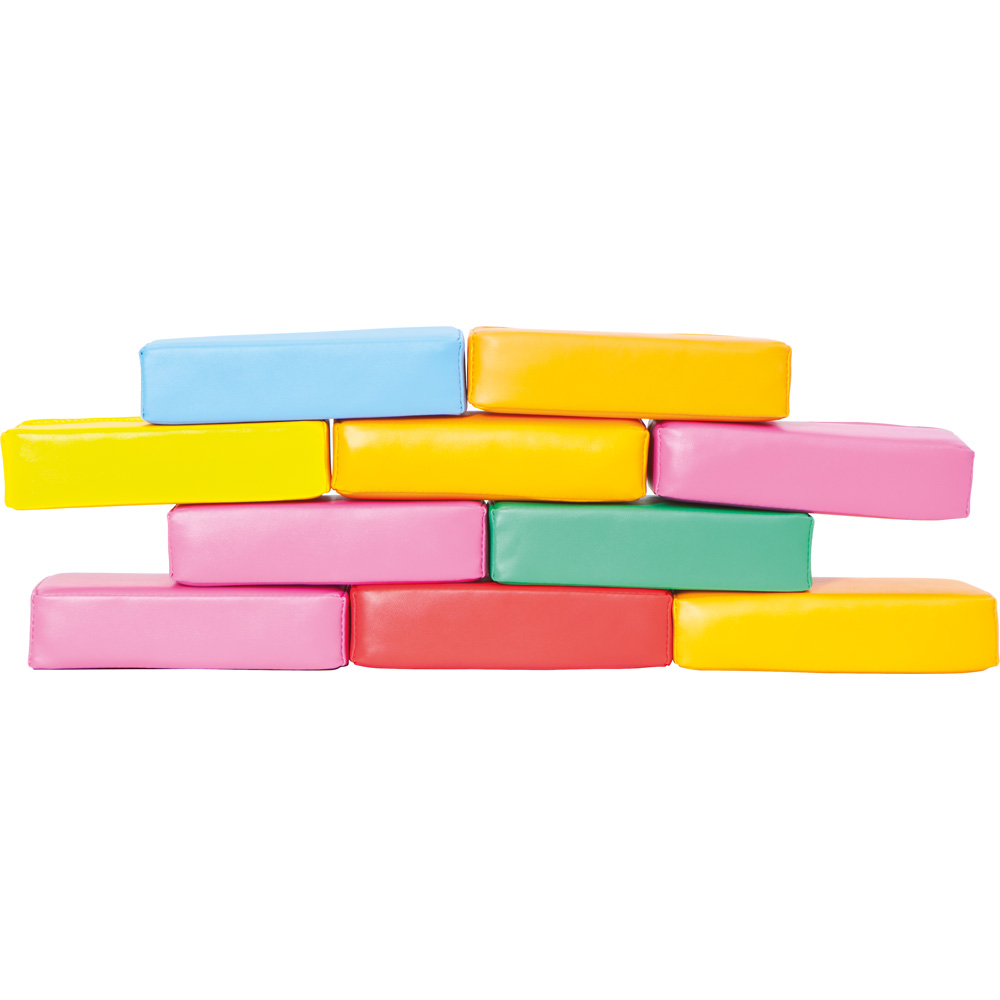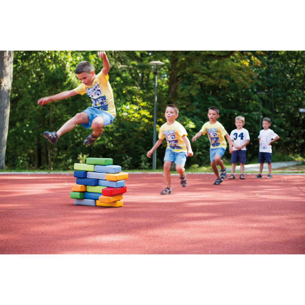 Schaumstoffbausteine, mit denen man eine Reihe von Bauwerken erbauen kann. Die Bausteine sind leicht und somit auch für die Kleinsten geeignet. Darüber hinaus können die Bausteine verwendet werden, um Farben und Zählen zu lehren. Der Bezug besteht aus leicht zu reinigendem Meditap.