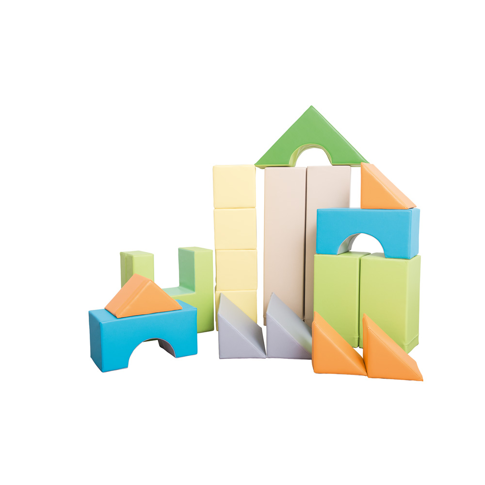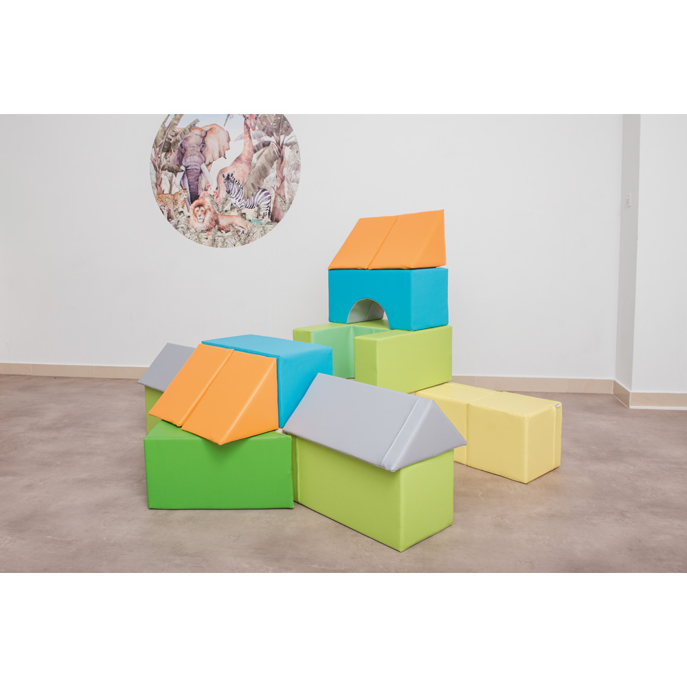 Die vielen Formen und bunten Farben ermöglichen es, fantasievolle Türme und Burgen zu bauen oder einen Hindernisparcours zu errichten. Sie können auch nur als Sitzgelegenheit verwendet werden.