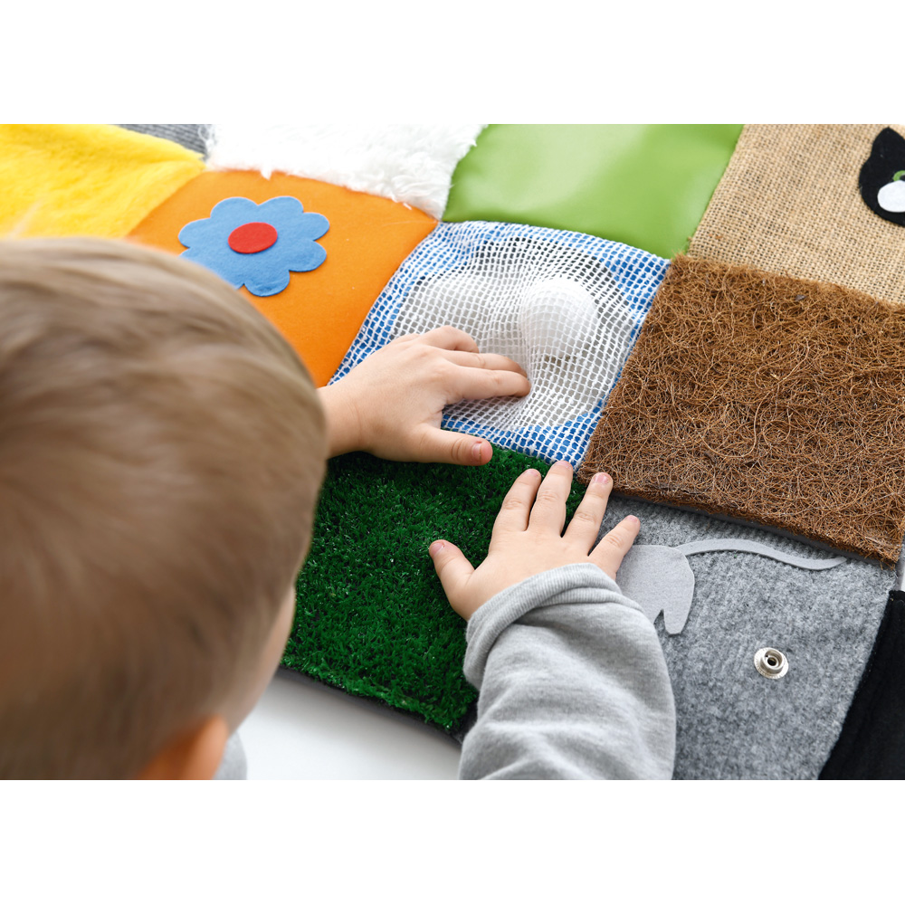 Beim Spielen mit dem Sensorischen Labyrinth verbessern die Kinder ihre Handmotorik und sensibilisieren sie für verschiedene Arten von Oberflächen.