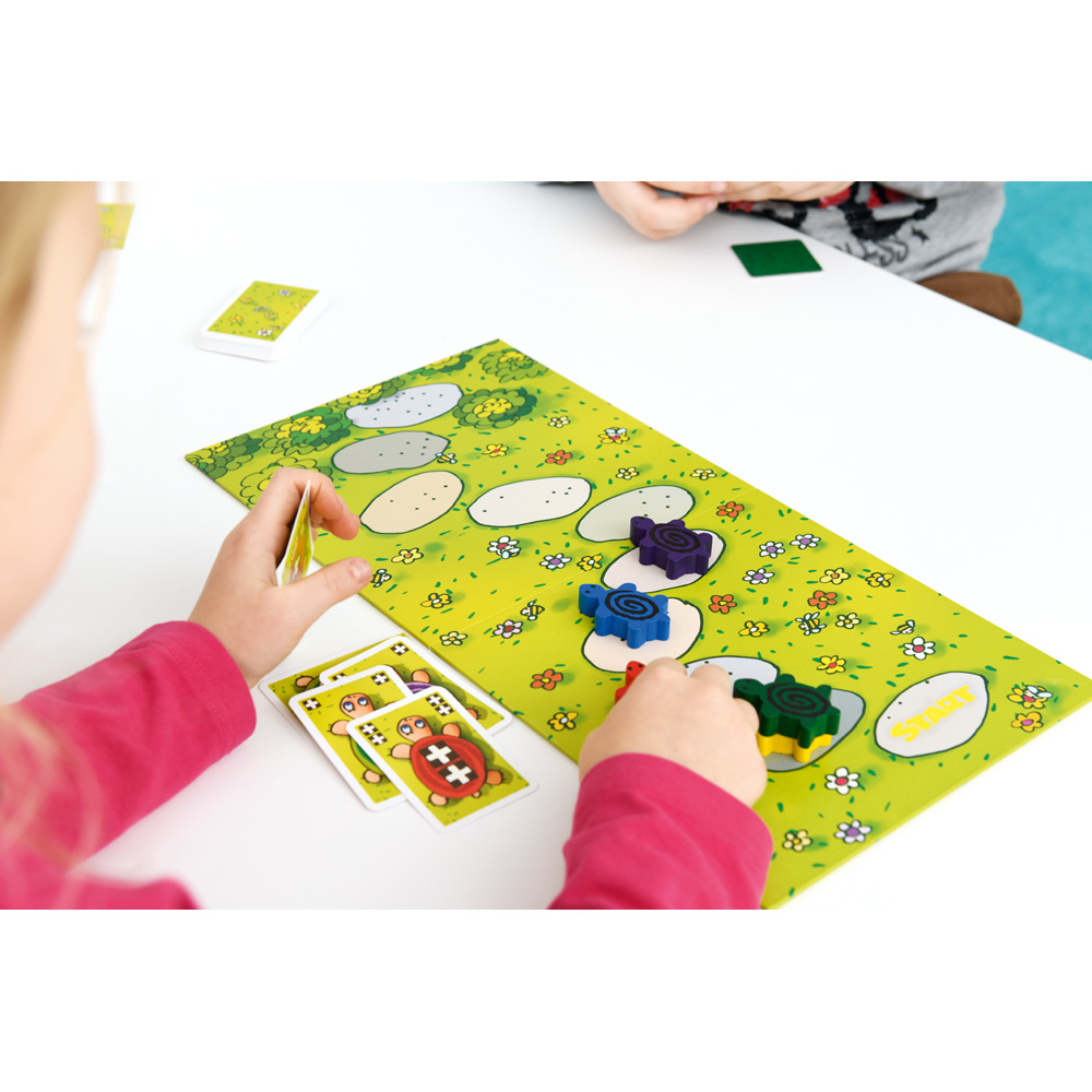 Schildkröten sind sympathische Tiere, die niemals in Eile sind. Aber wenn sie einen Salat erblicken, sind sie schnell wie der Wind! Ziel jedes Spielers ist, seine Schildkröte zum Salat zu führen. Dabei kann man sich auch mal auf dem Panzer eines Freundes ausruhen.