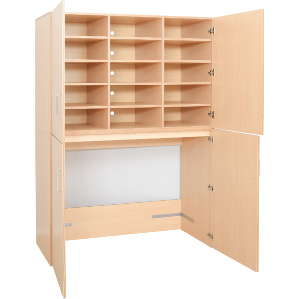 Aufbewahrungsort für Kindergartenbetten (501001-501005, 501013 - separat bestellbar) und Bettwäsche; für 15 Sets. In den Schrank ohne Sockel und Boden können die Betten bequem auf dem Transportwagen hineingerollt werden (133146 - separat bestellbar). Um die Stabilität des Schranks zu gewährleisten, muss er am Fussboden befestigt werden; Montageelemente werden mitgeliefert. Jedes Wäschefach mit Lüftungsöffnung in der Rückwand.