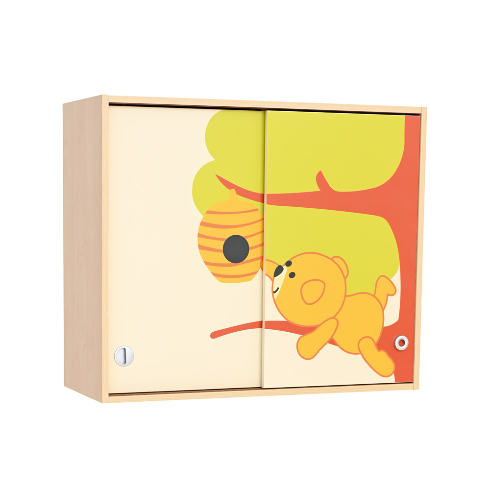 Die Möbelkollektion Phantasiewelt schafft eine freundliche Atmosphäre in Gruppenräumen. Ihre funktionalen Möbel bieten viel Raum zur Aufbewahrung von Lern- und Spielmaterialien, sowohl in den Schränken, als auch in den offenen Regalen. Die kinderfreundlichen phantasievollen Motive an den Schrankfronten stellen lustige Wald- und Haustiere dar. Schrankfronten aus laminierter MDF-Platte mit aufgedruckten Bildern, Korpus in Birke Dekor. Mit Schwenk- oder Schiebetüren. Die Schränke sind sowohl im Set, als auch einzeln erhältlich.