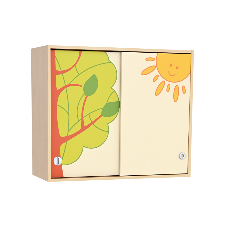 Die Möbelkollektion Fantasiewelt schafft eine freundliche Atmosphäre in Gruppenräumen. Ihre funktionalen Möbel bieten viel Raum zur Aufbewahrung von Lern- und Spielmaterialien, in den Schränken als sowie in den offenen Regalen. Die kinderfreundlichen, fantasievollen Motive stellen lustige Wald- und Haustiere oder Dinos dar. Schrankfronten aus laminierter MDF-Platte (16 mm) mit aufgedruckten Bildern, Korpus in Birke Dekor (18 mm). Mit Schwenk- oder Schiebetüren. Die Schränke sind sowohl im Set als auch einzeln erhältlich.