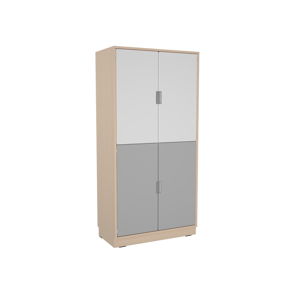 Für unsere Quadro-Schränke verwenden wir laminierte Spanplatte – für den Korpus wahlweise in Ahorn-Dekor oder Weiss, Mittelwände und Einlegeböden sind stets weiss. Das natürliche Dekor wird mit Fronten aus farbig folierter MDF-Platte ergänzt werden. Schubladen und Türen verfügen über Muschelgriffe. Türen öffnen 180°. Für Regale mit Mittelwand sind zusätzliche Fachböden erhältlich.