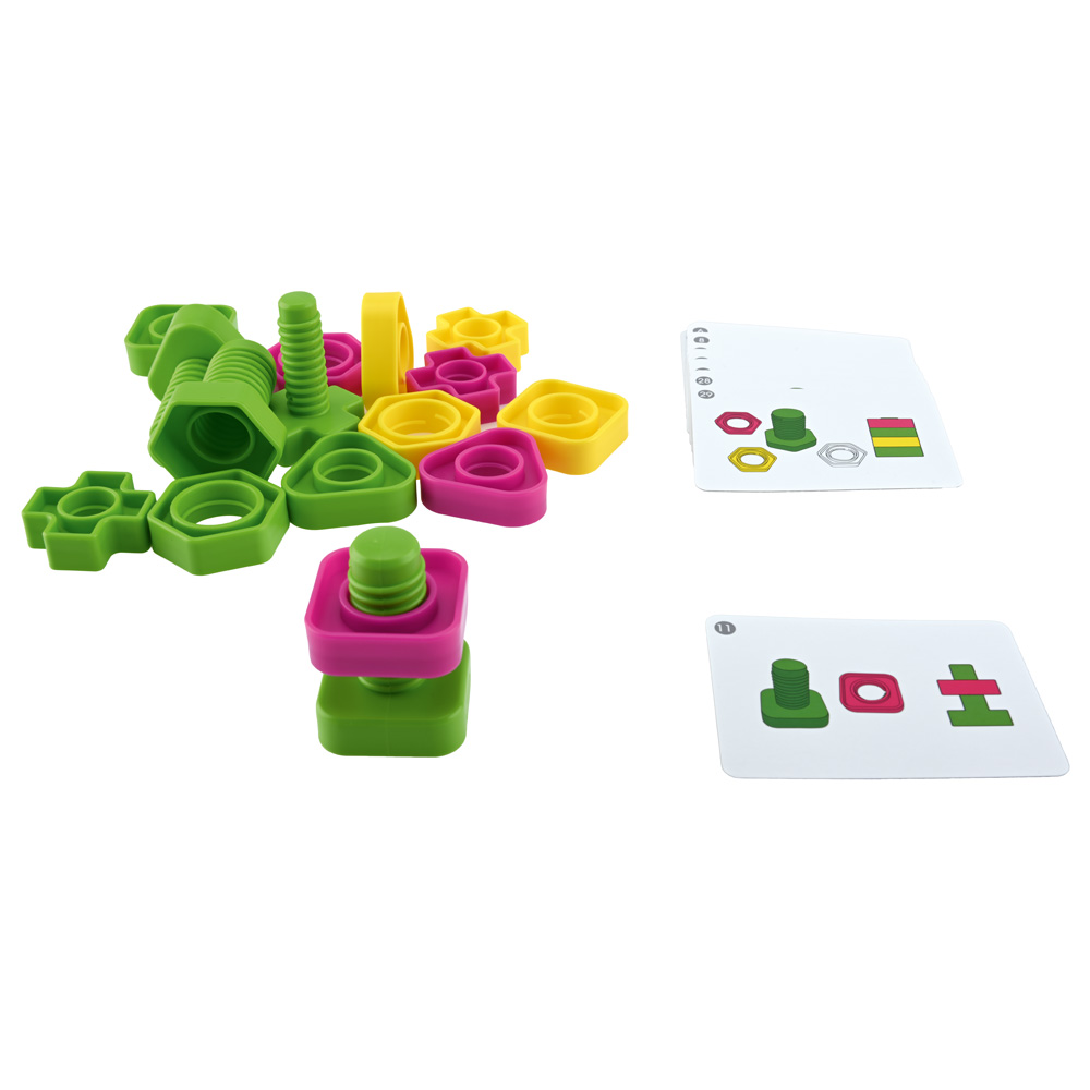 Kleine Handwerker können kreativ werden. Das Spielen mit dem Set fördert das logische Denken, die Feinmotorik, die Auge-Hand-Koordination sowie die Form- und Farberkennung.