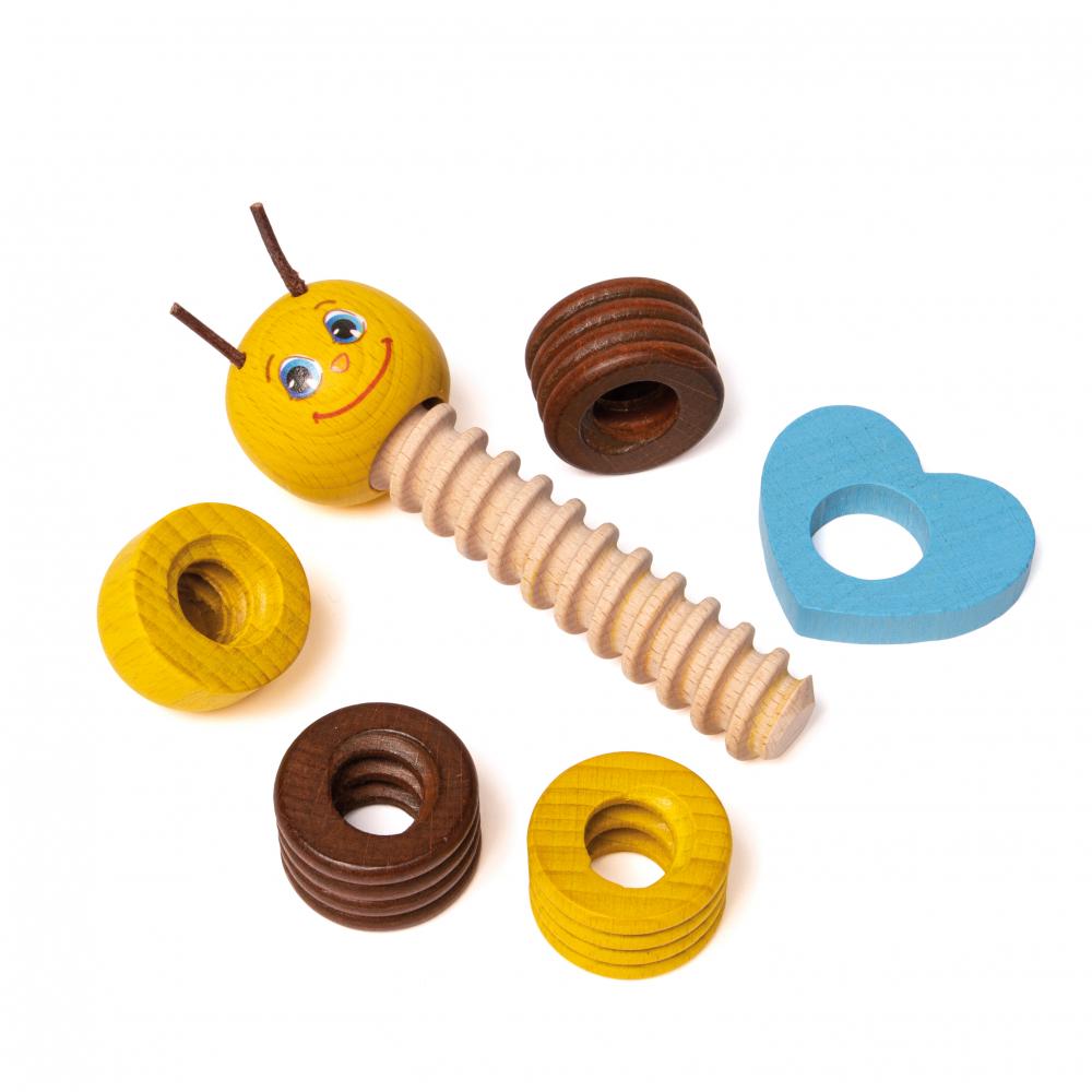Die süsse Biene kann mit verschiedenen Muttern variabel zusammengeschraubt werden. Der handliche Kopf ist fest mit dem Gewinde verbunden, damit haben die Kleinen alles gut im Griff.