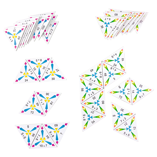 • 2 Dominospiele mit je 24 Dreieckskarten, Seitenlänge: 6 cm