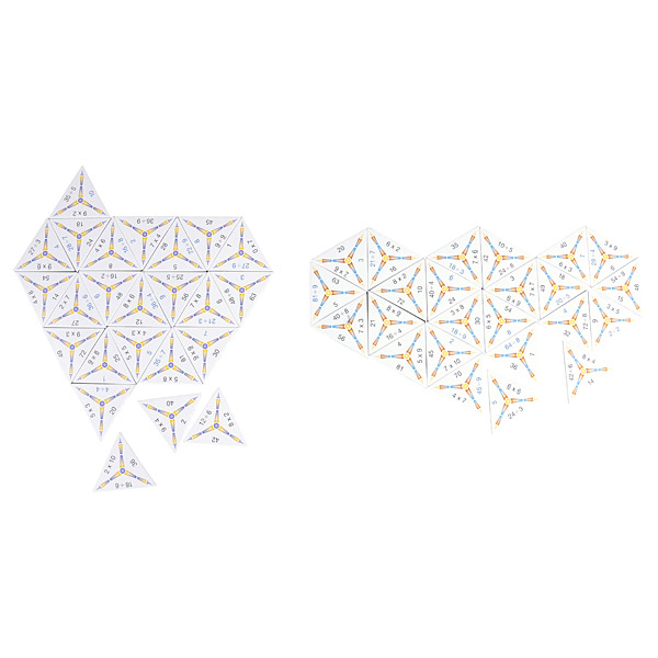 • 2 Dominospiele mit je 24 Dreieckskarten, Seitenlänge: 6 cm