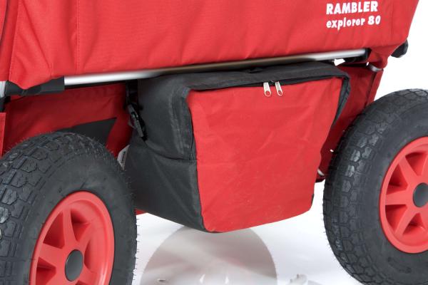 Die Seitentaschen sind nicht für den Rambler Daytrack geeignet, da dieser zu wenig Platz zwischen den Rädern hat.