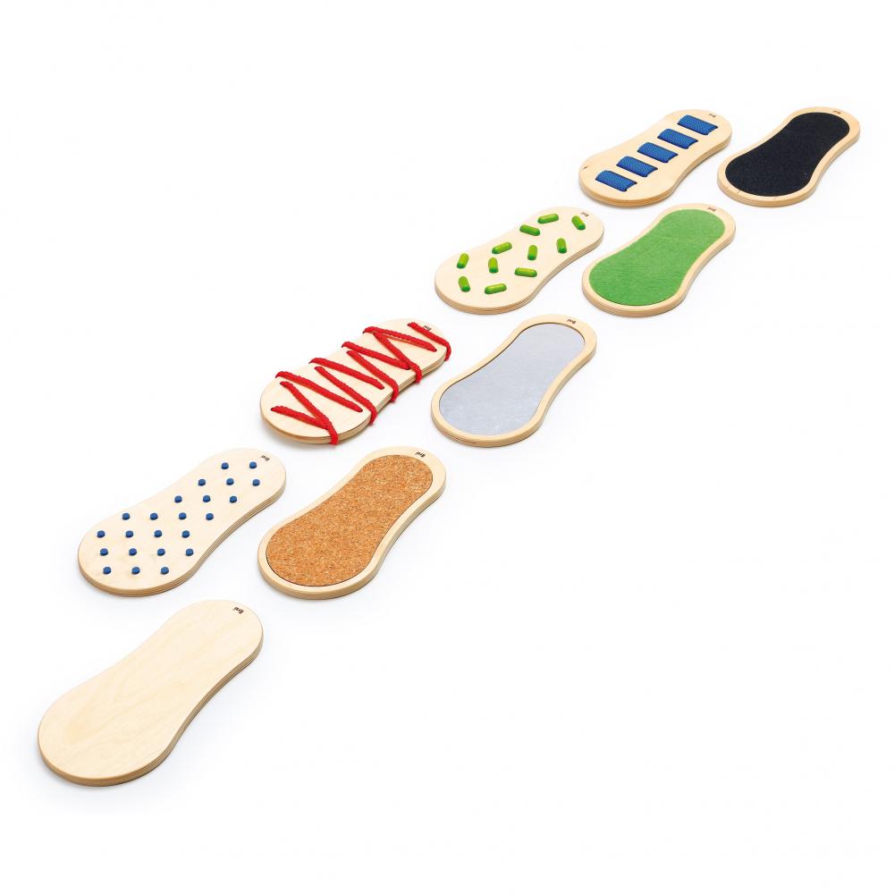 Neun Füsse mit unterschiedlichen Materialien und Oberflächenstrukturen bilden das breite Spektrum der Sence Pfad XL - Produktlinie ab. Wechselreize wie Warm-Kalt, Hart-Weich oder Glatt-Rauh können gefühlt und erlernt werden. Die Förderung von Gleichgewicht, Tastsinn und taktiler Wahrnehmung steht bei diesem Parcours im Vordergrund. Der Aufbau kann linear, kreisförmig oder variiert erfolgen und ist für jede Altersgruppe geeignet. Die Benutzung ohne Socken wird empfohlen.
