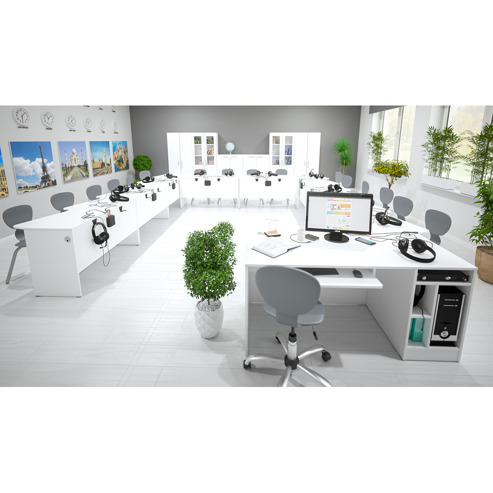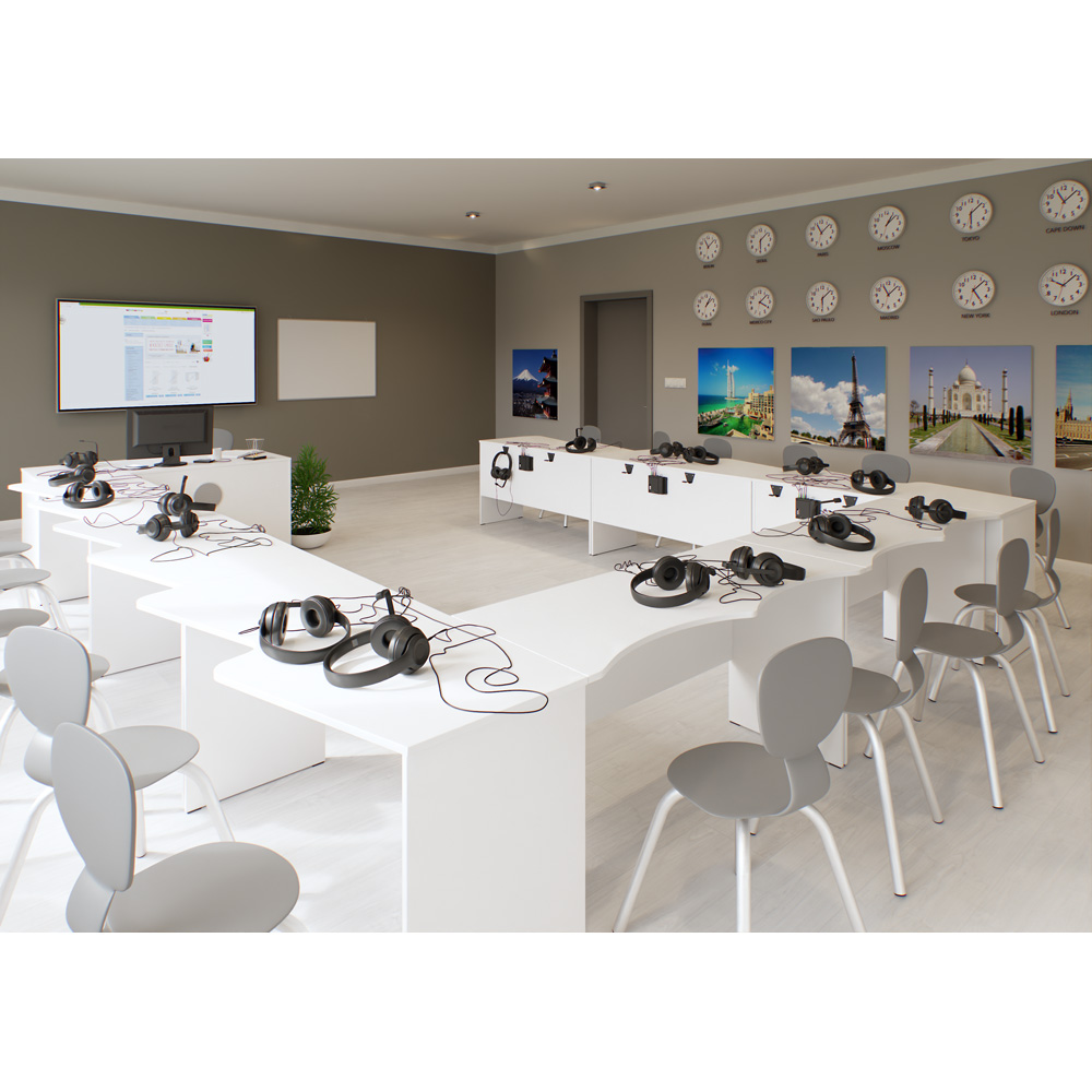 • Tischplatte aus grau laminierter Spanplatte (Stärke: 20 mm), Masse: 46 x 27 cm