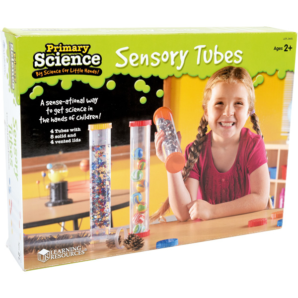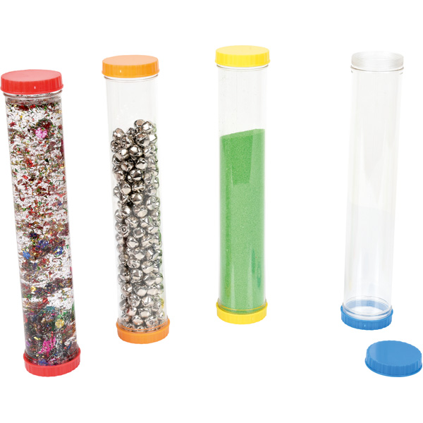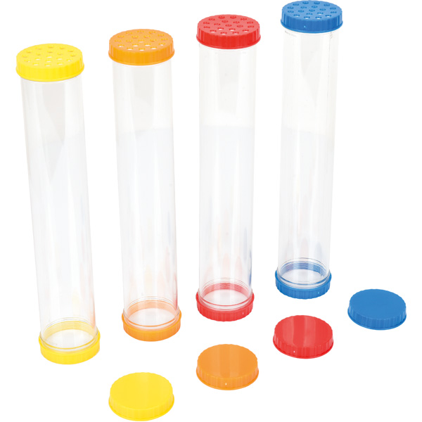 In die transparenten Röhren lassen sich verschiedene Materialien füllen, die dann beobachtet und erforscht werden können. Auch duftende Materialien oder kleine Tiere können in den Röhren platziert werden, dank ventilierter Kappen. Flüssigkeiten und feine Materialien bleiben durch geschlossene Kappen in der Röhre.