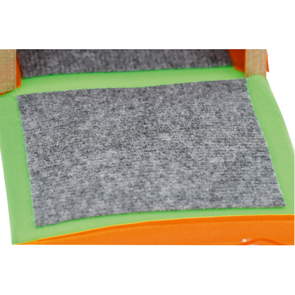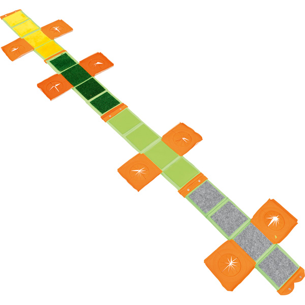 Diese weichen Boxen lassen sich auf vielfältige Weise einsetzen. Sie stimulieren die Sinnesrezeptoren der Handflächen, eignen sich zum Verstecken und Ertasten von Gegenständen, bilden die Grundlage von Fühlpfaden usw. Die Boxen bestehen aus weichem Schaumstoff, der mit Velours und Filz überzogen ist. Jede Box verfügt im Inneren über eine andere Textur: borstig, glatt, weich und hart. Wenn das Kind seine Hände in die seitlichen Öffnungen steckt, kann es das Innere erfühlen. Sie können jedoch auch vollständig auseinander gefaltet werden, so entsteht ein Pfad zum Ertasten. Zur zusätzlichen Stimulation können Bälle (522010, separat bestellbar) in die geschlossenen Boxen gelegt werden.