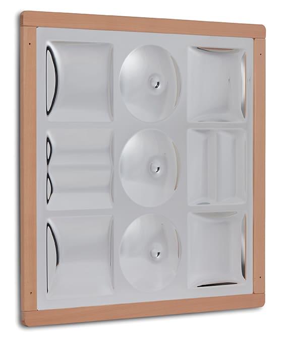 Fördern Sie die Neugierde und Beobachtungsgabe mit diesem sensorischen, facettenreichen Wandspiegel mit Holzrahmen. Die Vielfalt der Spiegelformen regt die Kinder zum Experimentieren an und macht ihnen Spass. Perfekt in Kombination mit dem Sensorischen Kuppelspiegel oder der Sensorischen Paillettentafel, um eine Sensorik Spielecke zu bilden.