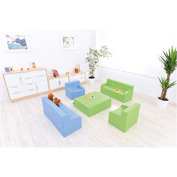 Schaumstoffsofa mit Bezug aus pflegeleichtem Kunstleder.