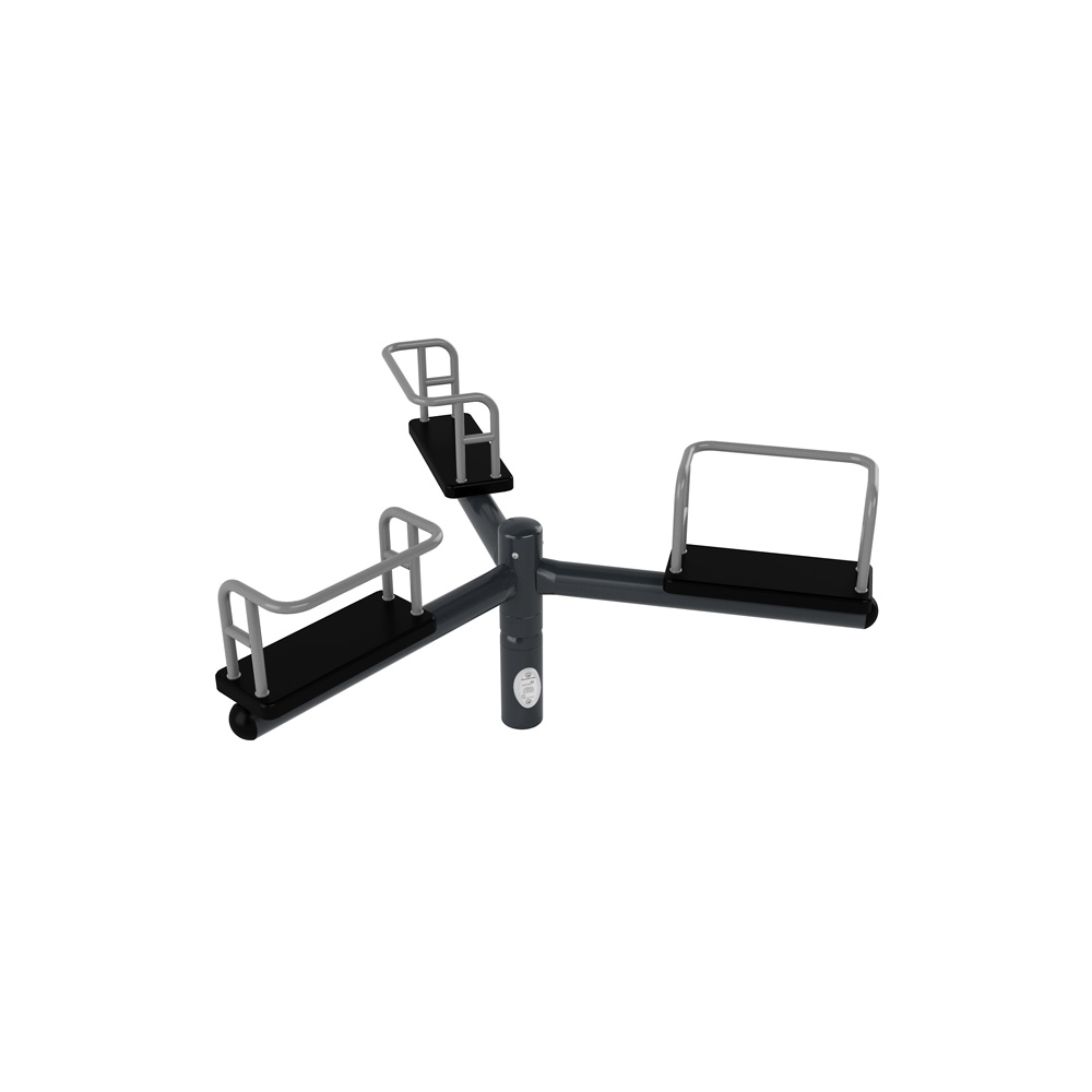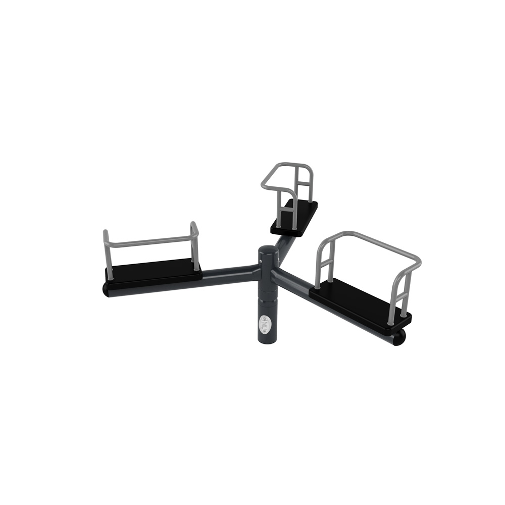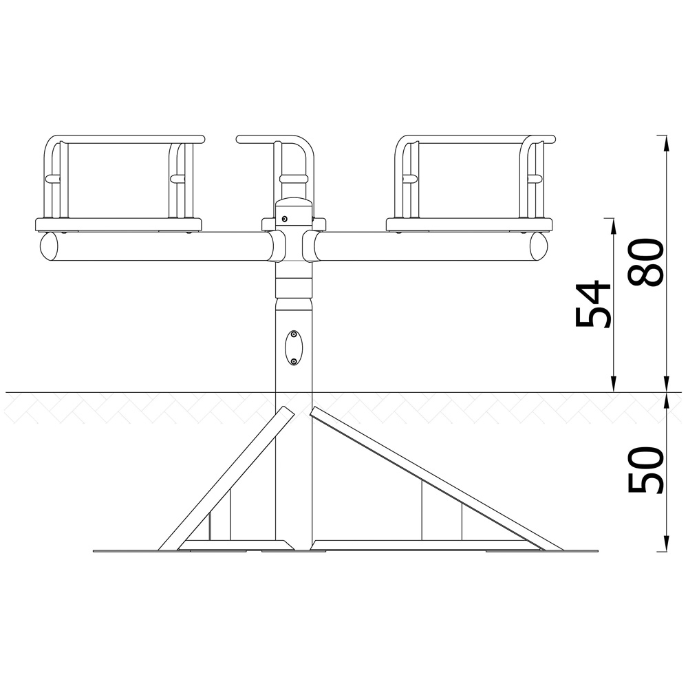 Klassisches Kinderkarussell in einer Variante mit 3 Sitzen. So ist mehr Platz zwischen den Karussellarmen. • Material: Stahl, verzinkt und pulverbeschichtet - garantiert witterungsbeständig • Sitzflächen aus EPDM-Gummi, mit Stahlverstärkung • Anzahl der Nutzer: 3 • Grundfläche: Ø 181 cm • Sicherheitsbereich: Ø 581 cm (Fläche: 27 m²) • Gesamthöhe: 80 cm • max. freie Fallhöhe: 100 cm • Sitzhöhe: 54 cm • von 3 bis 14 Jahren