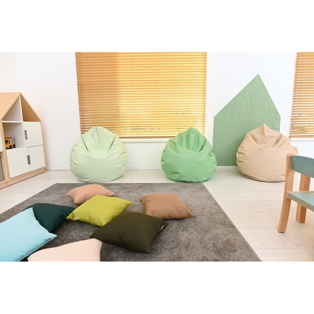 Weicher und bequemer Sitzsack. Der pflegeleichte Bezug aus Kunstleder ist mit Granulat gefüllt und ermöglicht eine perfekte Anpassung an den Körper.