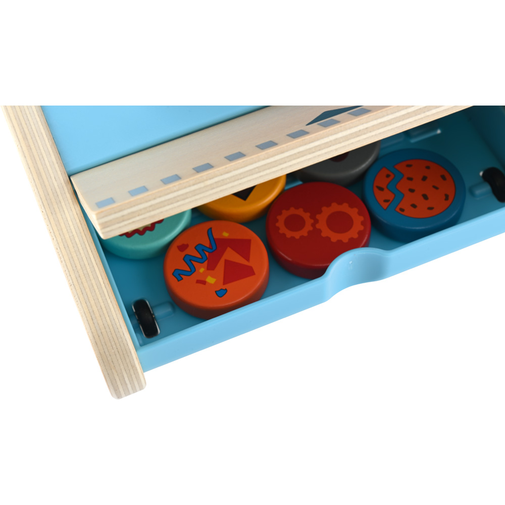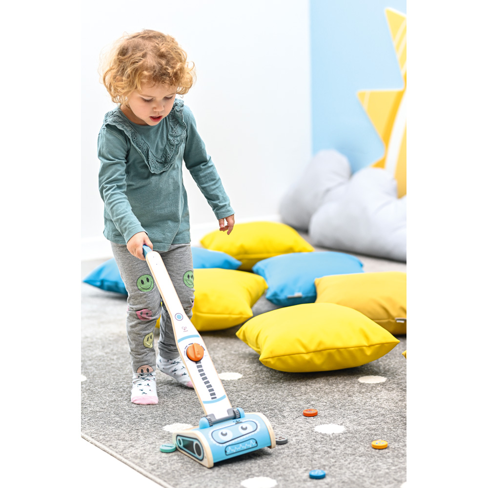 Der farbenfrohe Staubsauger mit lustigem Robotergesicht lehrt den Kindern spielerisch, alles sauber zu halten. So schulen die Kleinen nicht nur ihre motorischen Fähigkeiten, sondern entwickeln auch Freude an der Hausarbeit. Das Spielgerät kann die sechs mitgelieferten Abfall-Chips tatsächlich aufsaugen.