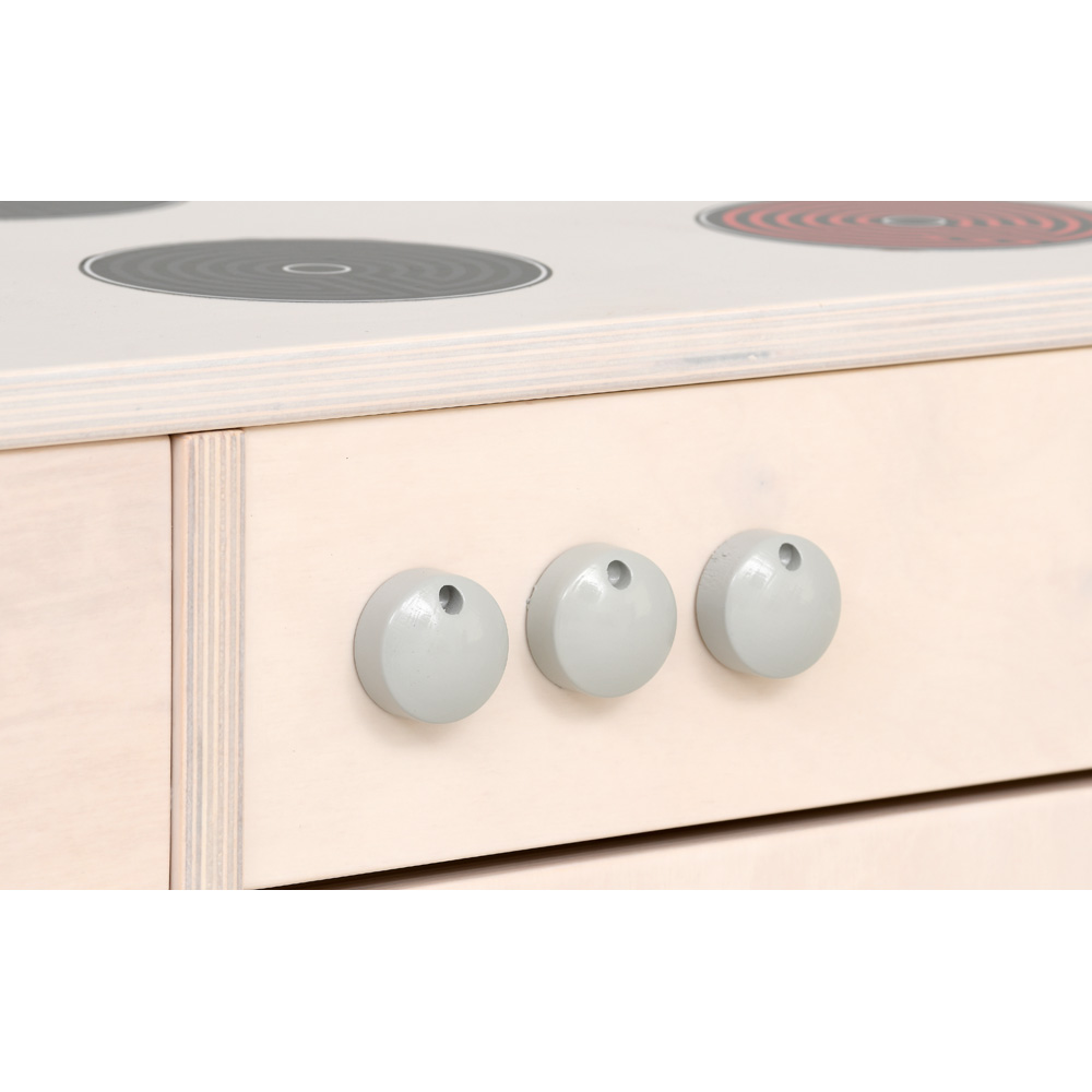 Die Spielecke Bianca bildet eine Spielkulisse für Rollenspiele und umfasst 13 Module (Küchenausstattung und Kleiderschränke). Mit den Modulen lässt sich eine Spielecke nach individuellem Bedürfnis ausstatten. Hier können die Kinder das Familienleben nachstellen und sich in diversen Rollen ausprobieren. Die Möbel sind aus weiss gebeiztem und lackiertem Sperrholz (Stärke: 19 mm) gefertigt – hochwertig und stabil. Frei im Raum aufstellbar dank hochwertig gearbeiteter Rückwände. Kunststoffgleiter unter dem Boden schonen den Fussboden.