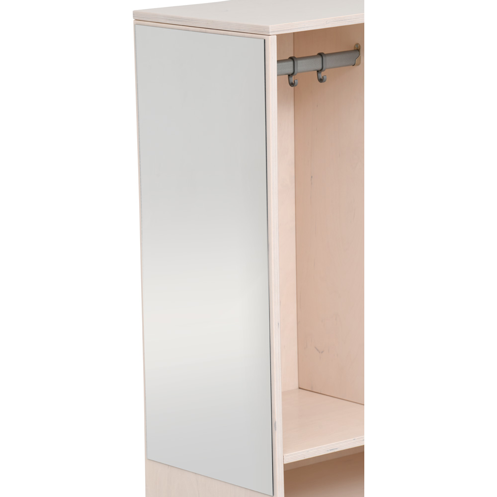 Die Spielecke Bianca bildet eine Spielkulisse für Rollenspiele und umfasst 13 Module (Küchenausstattung und Kleiderschränke). Mit den Modulen lässt sich eine Spielecke nach individuellem Bedürfnis ausstatten. Hier können die Kinder das Familienleben nachstellen und sich in diversen Rollen ausprobieren. Die Möbel sind aus weiss gebeiztem und lackiertem Sperrholz (Stärke: 19 mm) gefertigt – hochwertig und stabil. Frei im Raum aufstellbar dank hochwertig gearbeiteter Rückwände. Kunststoffgleiter unter dem Boden schonen den Fussboden.