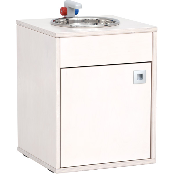 Die Spielecke Bianca S bildet eine Spielkulisse für Rollenspiele und umfasst 13 Module (Küchenausstattung und Kleiderschränke). Mit den Modulen lässt sich eine Spielecke nach individuellem Bedürfnis ausstatten. Hier können die Kinder das Familienleben nachstellen und sich in diversen Rollen ausprobieren. Die Möbel sind aus weiss gebeiztem und lackiertem Sperrholz (Stärke: 19 mm) gefertigt – hochwertig und stabil. Frei im Raum aufstellbar dank hochwertig gearbeiteter Rückwände. Kunststoffgleiter unter dem Sockel schonen den Fussboden.