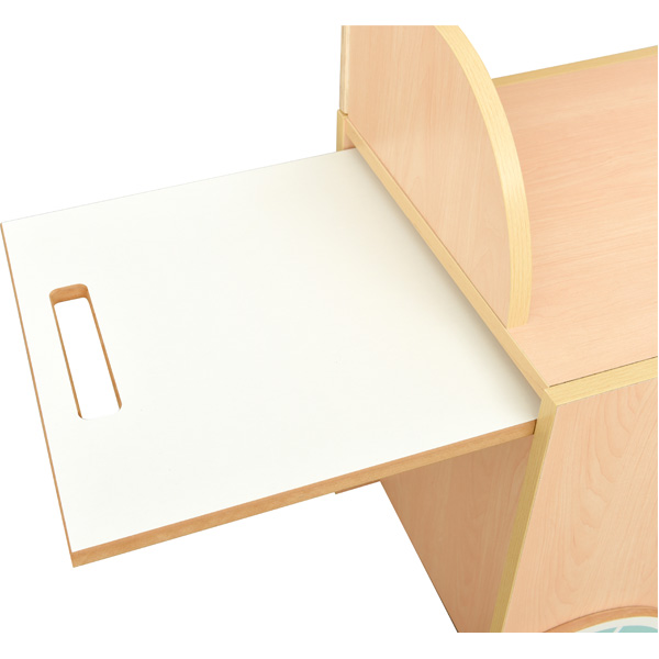 • seitlich ausziehbare Ablagefläche (Tiefe: 35 cm, Arbeitshöhe: 58,5 cm)