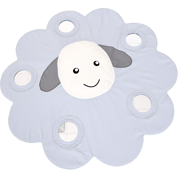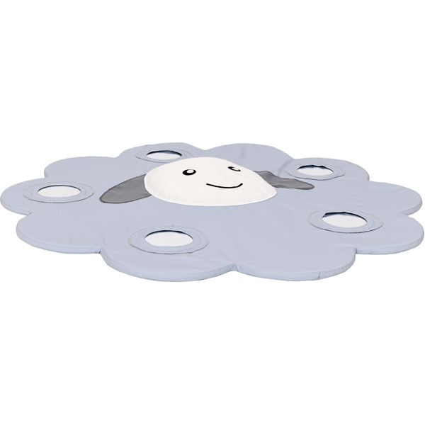 Aus Schaumstoff mit Bezug aus schwer entflammbarem Polyester FR-Textil. Applikationen gefüllt mit Silikongranulat. Das weiche Schäfchen lädt zum Kuscheln ein.