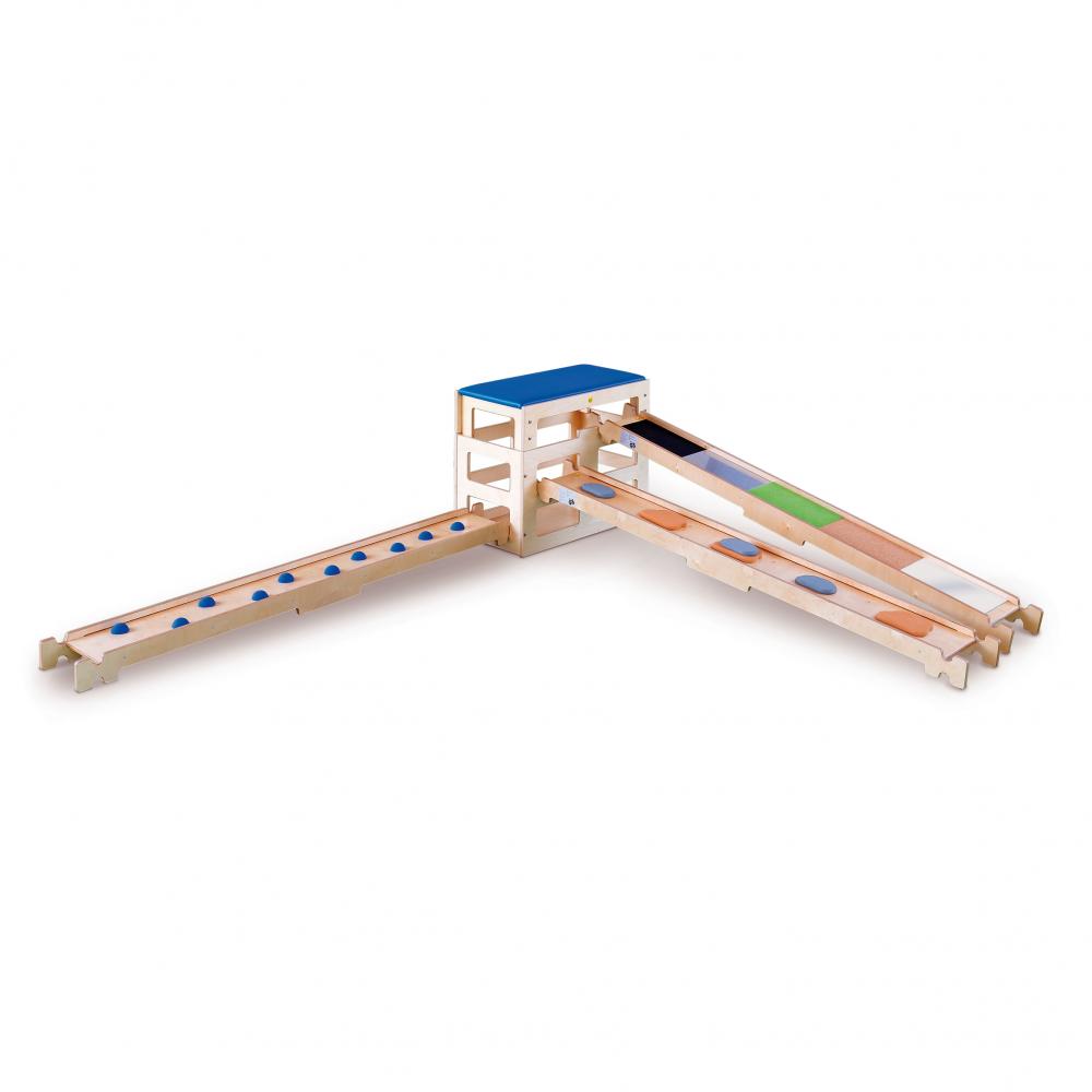 Die Sportbox ist das Multitalent im Sportraum und fordert zum Klettern und Balancieren auf. Mit den allseitigen Öffnungen kann die Sportbox mit Balancierbrettern kombiniert werden. Beim Aufstecken vom Aufsatz auf die Sportbox entstehen zusätzliche Aufnahmen für Balancierbretter und Rutschen.