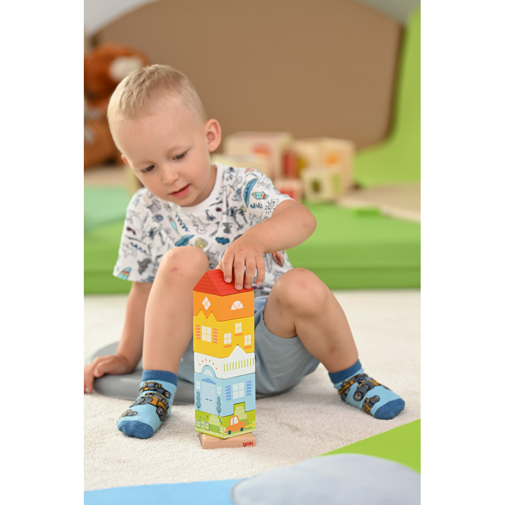 Damit die zielgerichtete Stadtvilla in voller Höhe zu sehen ist, müssen sie aus den einzelnen Holzklötzchen in der richtigen Reihenfolge zusammengesteckt werden. Schult das räumliche Vorstellungsvermögen, die Feinmotorik und Geduld.